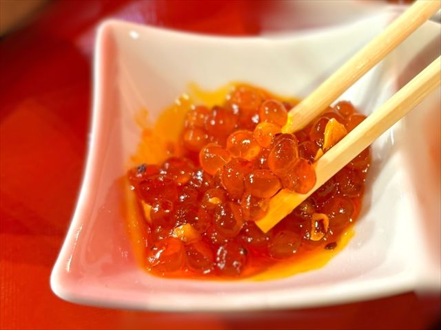 いくらがラー油の味をうまく吸い込んでいてまろやかな味わい。ラー油の香りが豊かなので、魚卵の独特な味が苦手な方でもおいしくいただけそう。
