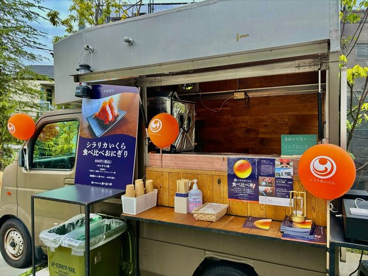 今回の目玉である「シラリカいくら」は一体どんなものなのか? その正体を確かめるために会場外のキッチンカーで売られているいくらおにぎりと、持参したコンビニのいくらおにぎりと比較してみることに!