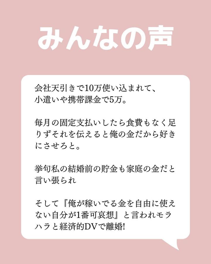 実際に経済的DVを経験したみなさんのコメントを集めました。
