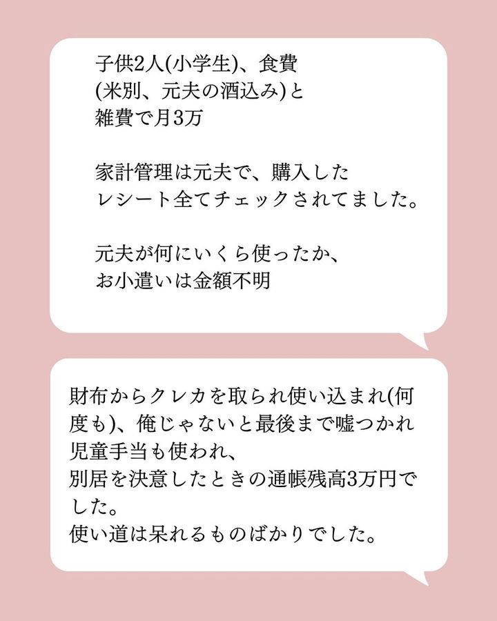 当時は、「旦那さんそんなにケチなんだなー」くらいの感想しか持たなかった私。ですが今、「もしかして経済的DVだったのでは?」と、思うに至りました。