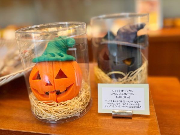チョコレートでできたジャック オ ランタンの中には、ナッツを乗せた3種類のマンディアンチョコレートやハロウィンモチーフのチョコレートが入っています!今年は新たに黒猫とスカルが仲間入り。(各4000円)