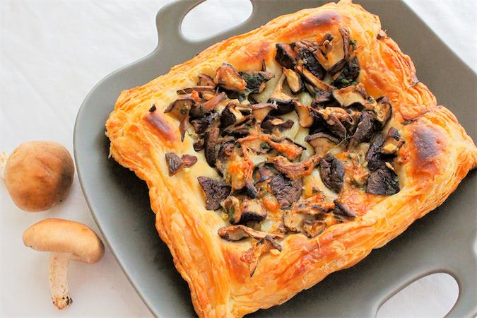 成形したパイ生地に香ばしく焼いたしいたけを乗せ、230℃のオーブンで焼くだけです。焼けたら粗熱を取って、食べやすい大きさに切りましょう!