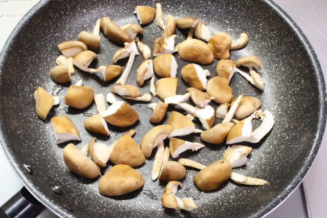 3. フライパンにサラダ油を引き、断面を下にしてしいたけを並べて、強めの中火で3分ほど焼きます。