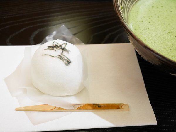 美術館隣の茶室「佐喜知庵」では、展覧会オリジナル和菓子とお抹茶がいただけます(300円)。 絵柄は全部で9種類で、どの絵になるかはお楽しみです。 数量限定で13時~15時30分、展覧会は再入場もできるので、いただきたい場合はお早めに。 ※休館日と11月9日(土)は、呈茶はお休みです。