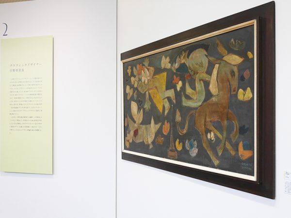 まずはグラフィックデザインのブース。 1960年前後の作品が中心で、商品パッケージやリサイタルのポスター、パンフレットなど57点の展示です。