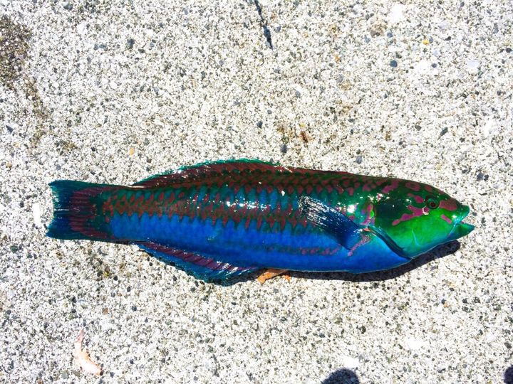 「錦遍羅(にしきべら)」はベラ科に分類される海水魚の一種で、全長約20cmほどの魚です。 非常に鮮やかな外見で、背は緑色に紅褐色の斑紋が、腹は藍色で紅色の縦帯が1本入っています。 本州中部から沖縄にかけて分布しており、目を引く姿から鑑賞用に飼育されることもあります。