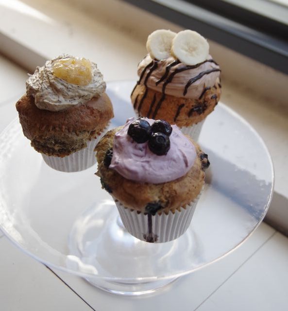 手前から:ブルーベリークリームチーズマフィン with トッピング