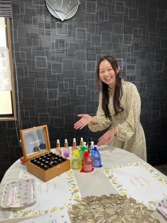 「IRODORI」の阿部彩さんです。アロマを使ったワークショップを、お友達・知人を通じてご自宅などで、行っています。