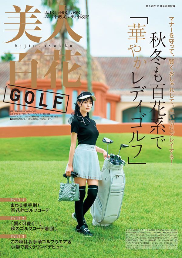 フェミニン派ゴルファーたちにお届けする【美人百花GOLF】! 「ゴルフを始めようか悩んでいる」「ゴルフはやらないけどウエアは見てみたい!」など、ゴルフをやっていない読者でも楽しめる企画が目白押し。