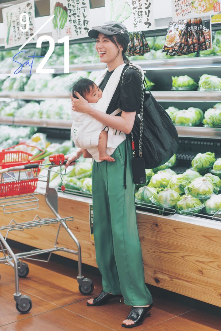 [ママ]Tシャツ¥5,500(ミラオーウェン/ミラ オーウェン ルミネ新宿2店)キャップ¥4,400(ニューエラ)ピアス¥132,000リング¥119,900(すべてマリハ)スマホケース¥5,610スマホショルダー¥4,400(ともにトポロジー/トポロジー フラッグシップ ショップ)バッグ¥5,500(マトー バイ マールマール/マールマール)サンダル¥16,500(ダイアナ/ダイアナ 銀座本店)[子ども]ロンパース¥4,990※2枚セット、オンライン限定(babyGap)抱っこ紐¥34,650(サイベックス/CTP JAPANカスタマーサービス)