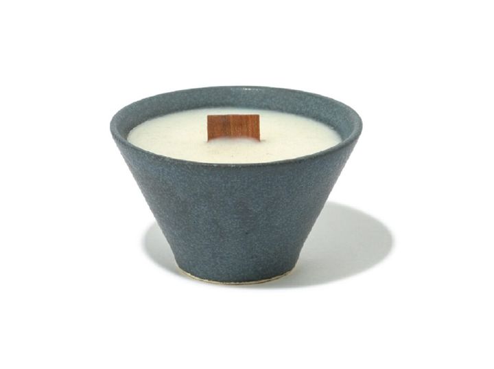 ススや煙が出にくいソイワックスと人工香料不使用のホーウッドとフランキンセンスの天然精油をブレンドしたハンドメイドキャンドル。木芯が燃えていく音はまるで焚き火のよう。¥8,690(バドル/リビング・モティーフ TEL:03・3587・2784)
