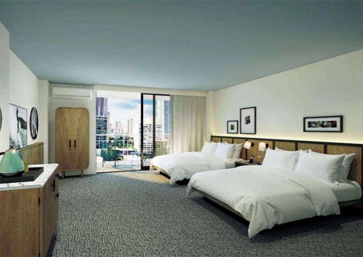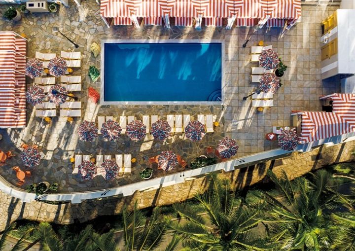 ワイキキの中心地に位置しており、観光の拠点としてアクセス抜群!2023年10月にリニューアルしたばかりで、どこを切り取っても〝映え〟な、レトロモダンかつ、ポップな内容デザインにテンションが上がるはず。ホテルの中もガールが大好きなピンクを基調とした可愛い空間になっています♡