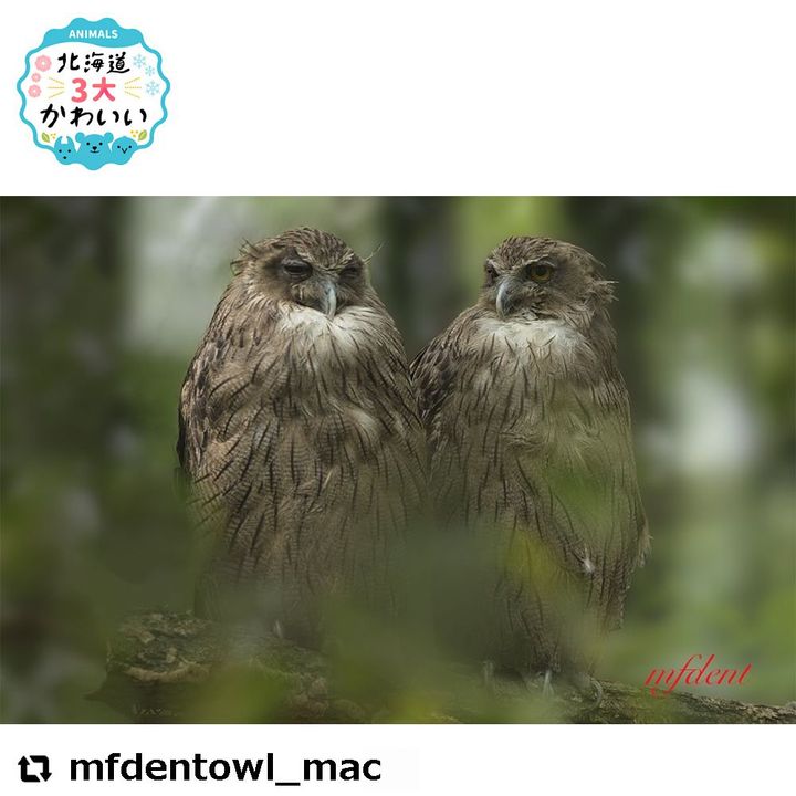 @mfdentowl_mac さんによると、「右のフクロウが飛んできたら、すぐそばに相方がいたのに気づいて、あらいたの?という瞬間。ほんの10秒ほどでした」とのこと。とっても貴重なお写真…、2羽の表情、羽毛のもふもふ感、そして色合い、すべてが美しいですねー。