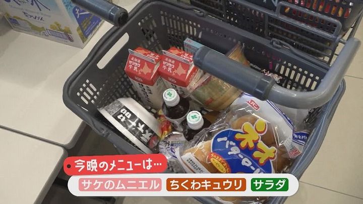 聖子さん:「今日はさけ買ったのでムニエル、家にある野菜で野菜サラダ、ちくわきゅうり。ミートソースも作ります」