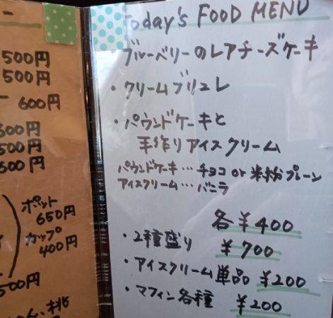 今日のスイーツメニューが外に出ていました。中に入れば写真付きのメニューもあるのかな…期待しながら入りましたよ。