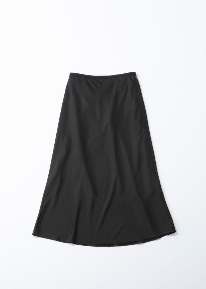 定番の「黒のスカート」でも、サテン生地と控えめなフレアがコーデを華やかに見せてくれます。コスパ大の高見えサテンスカートはこの秋も活躍すること間違いナシ。
