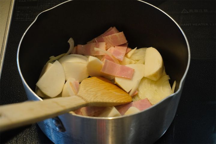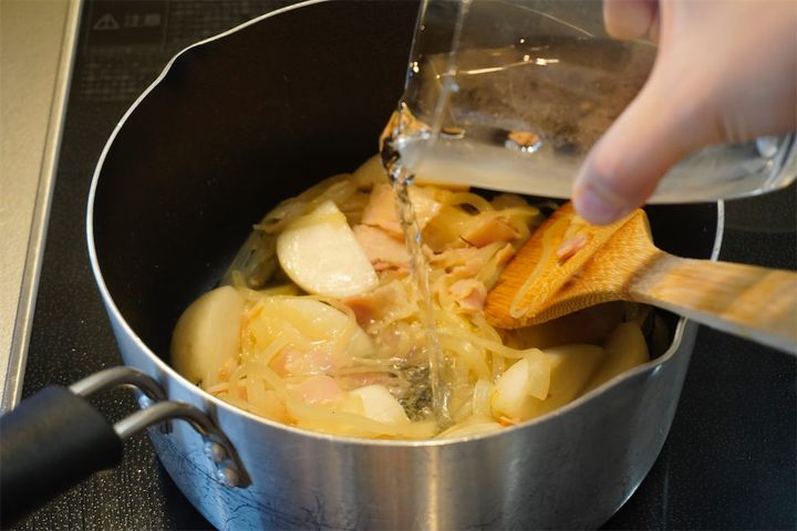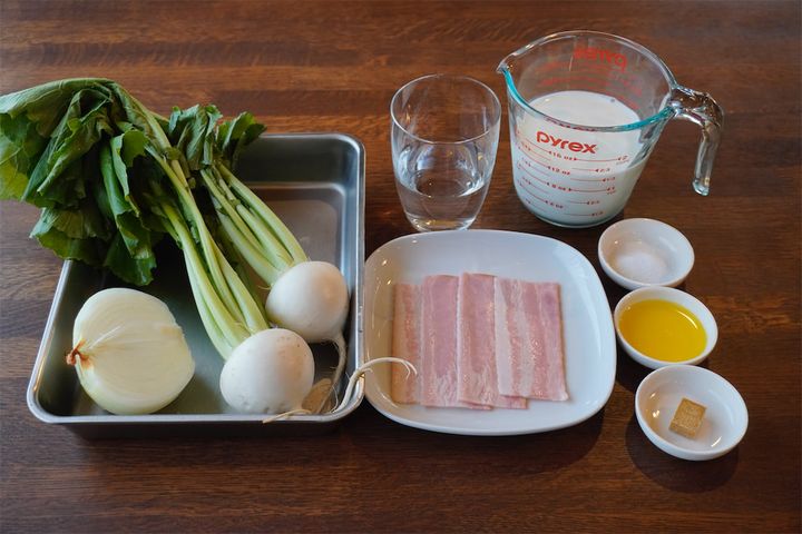 かぶの風味をもっと出したい場合は、ベーコンか固形コンソメのどちらかをなしにしてもOK。