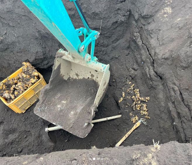 正解は、穴掘り…もとい、種生姜の掘り起こしです!