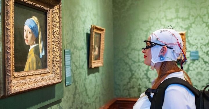 調査では20名のボランティアを対象に、視線を追跡するアイトラッカーと脳波(EEG)を非侵襲的に測定できるキャップを装着し、同館に所蔵されている『真珠の耳飾りの少女』を鑑賞してもらいました。