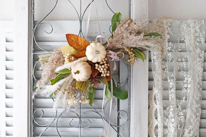 わが家では、玄関や部屋の壁に季節ごとのリースやスワッグを飾っています。