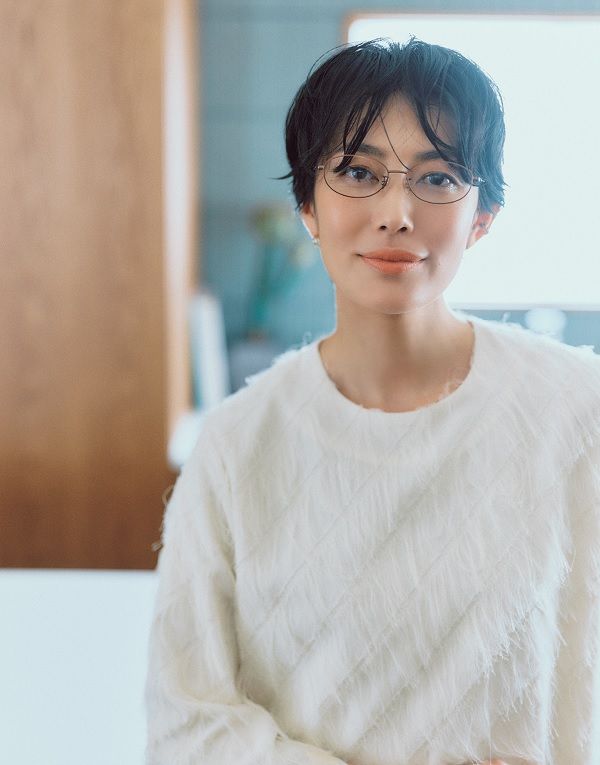 アイメイクの延長的ポジションのオーバル。目をより際立たせてくれます。眼鏡2万4200円(ケイト・スペード ニューヨーク/サフィロジャパン カスタマーサービス) ドレス6万6000円(チノ/モールド) ピアス1万1000円(ジュエッテ) イヤーカフ7万2600円(エテ)