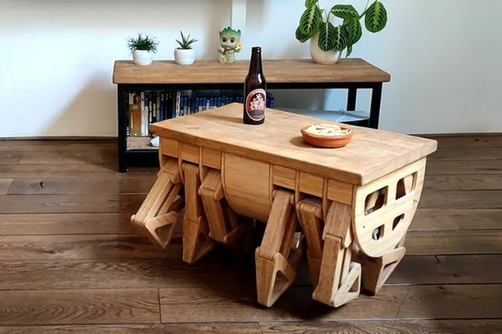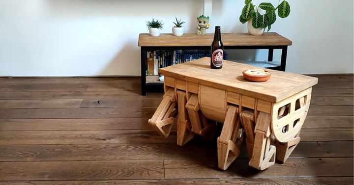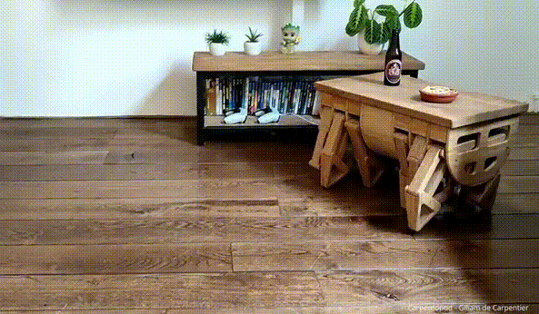 say hello to carpentopod, a 12-legged walking wooden table that can serve drinks or snacks