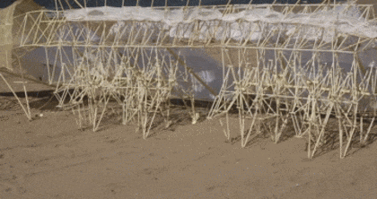 ストランドビーストは、プラスチック材料で作られた作品ですが、風の力を受けて、まるで生きているかのように歩くことができます。