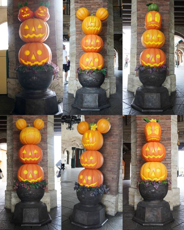 思わず写真を撮りたくなる、ハロウィーンらしいデコレーションも見どころのひとつ。ミラコスタ通りには、ディズニーの仲間たちの可愛らしいカボチャのデコレーションが柱に沿って1つずつ設置されています。