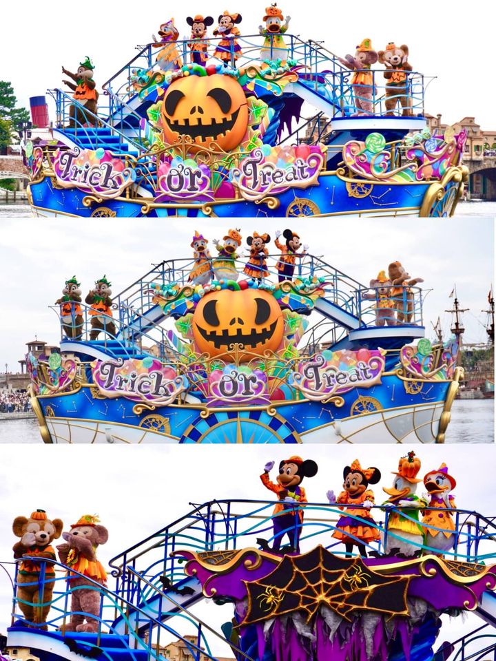 ミッキーマウスをはじめとするディズニーの仲間たちが、たくさんのお菓子と大きなパンプキンを載せた船で登場。楽しく愉快なトリートダンスと、ちょっと怖いトリックダンスの2種類のダンスを一緒に踊って賑やかなハロウィーンを楽しめます。オレンジを基調としたお菓子やパンプキン柄のキュートなハロウィーンらしい衣装にも注目です。