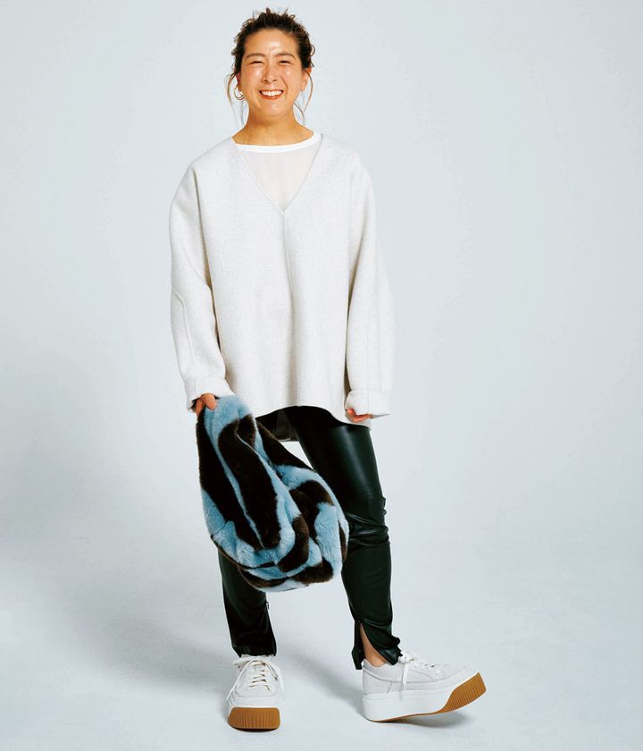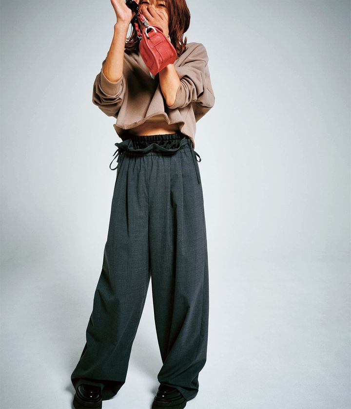 パンツ¥30,800(ルームエイト/オットデザイン)プルオーバー¥132,000(カオス/カオス丸の内)バッグ¥34,100(ジャッキー/ジャック・オブ・オール・トレーズ プレスルーム)スニーカー¥22,000(UGG®/デッカーズ・ジャパン)イヤーカフ¥35,200(リューク)