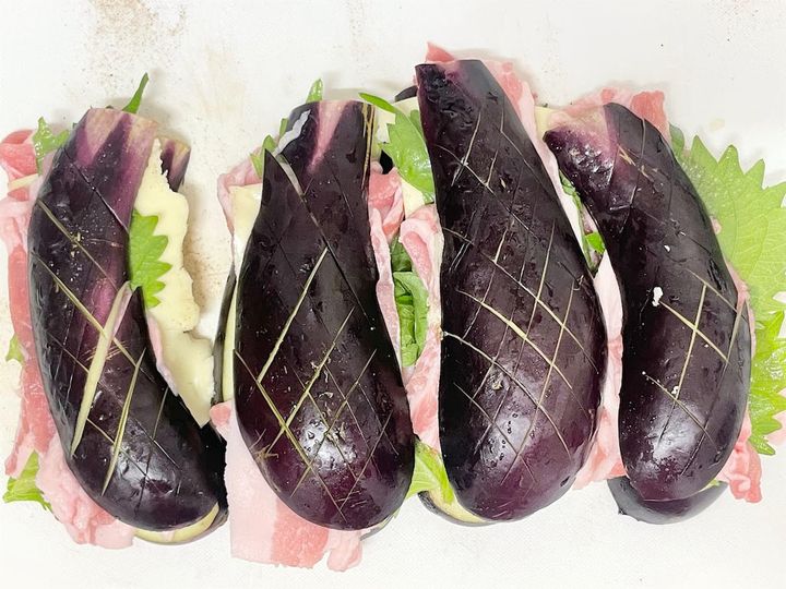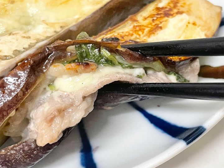秋茄子は具材を“挟んで”蒸し焼こう!豚バラの脂にチーズがとろ~り♡旨味吸った果肉もとろんとろん♡