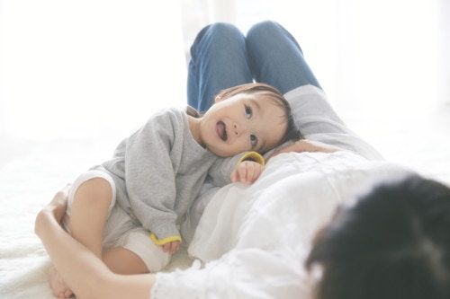 親が寝転び、その上に子どもを乗せるスキンシップ遊びです。おなかの上に子どもを寝転がせてみたり、ママの背中に乗せてマッサージしてもらったりしましょう。抱っこ遊びを行う際は、転落に注意しながら遊んでくださいね。