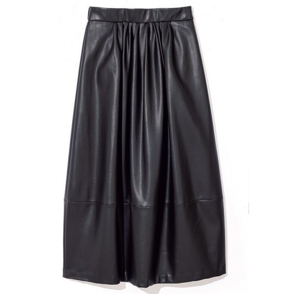 控えめなコクーン型がモードなスカート。フェイクレザー素材。スカート1万3090円(すべてエミュール/ロペピクニック)