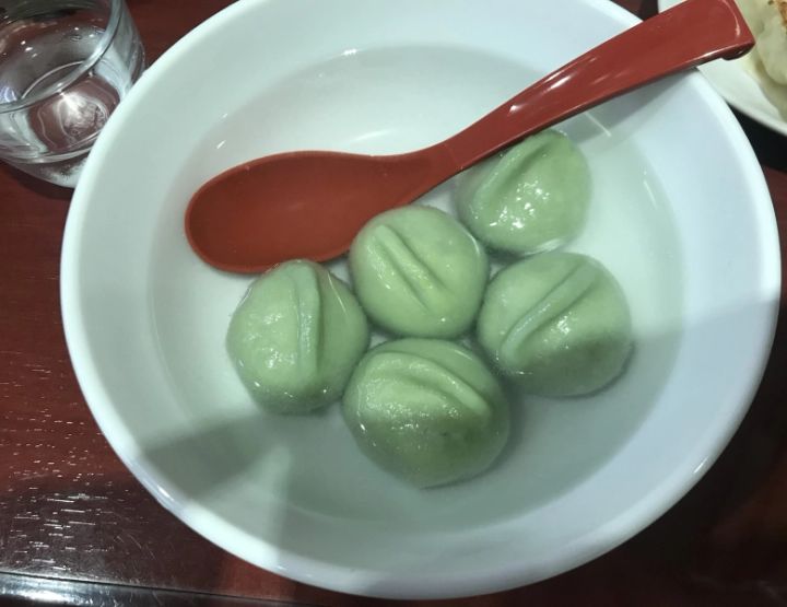 今回は水餃子を食べました。翡翠色の皮も、恐竜? ウルトラマン? みたいでかわいいですよね♡