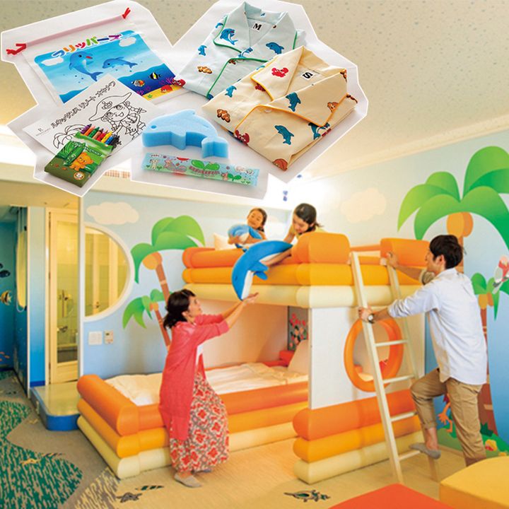 大人のツインルームと、海をテーマにした子ども部屋のコネクティングルームが家族連れに大人気。