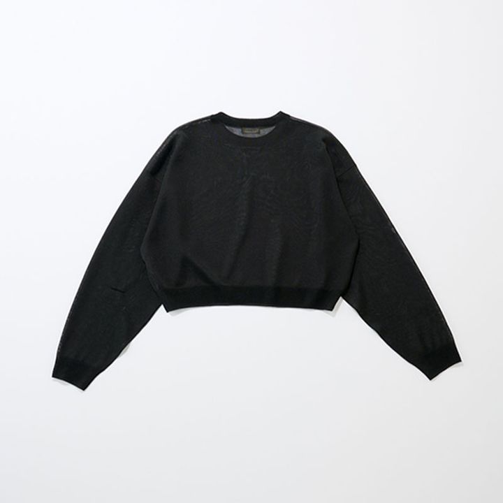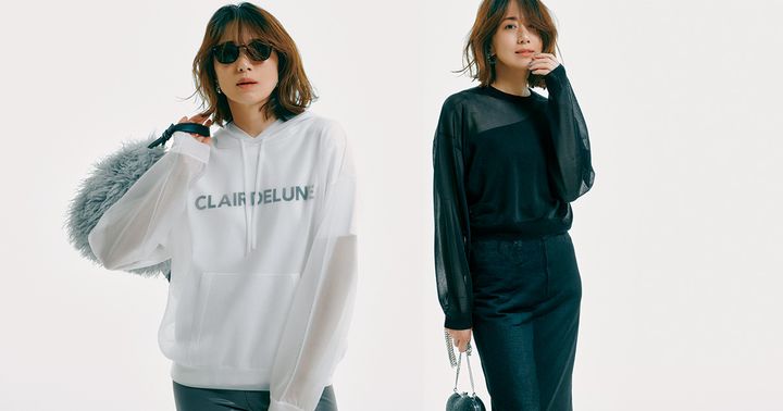 この秋は引き続き透け感重視のアイテムがトレンド。思い切って上下で透けアイテムを取り入れて、重ね着を思いっきり楽しみたい。写真のブラックのほかにホワイトも販売します。