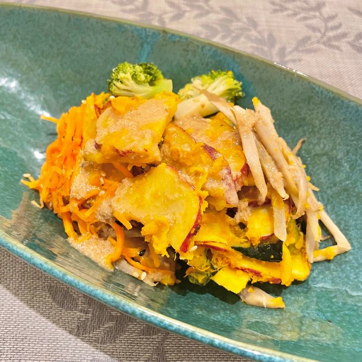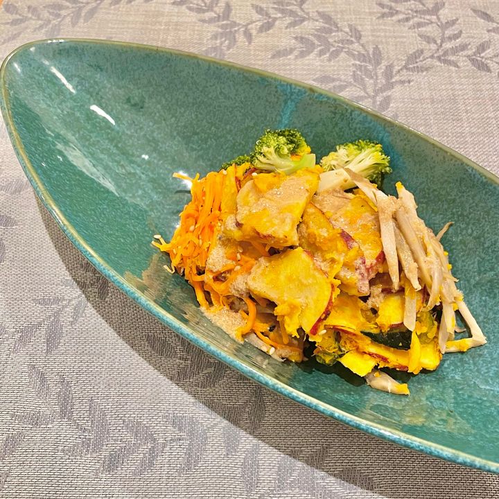 秋にぴったりな“揚げかぼちゃとさつま芋の胡麻酢サラダ”