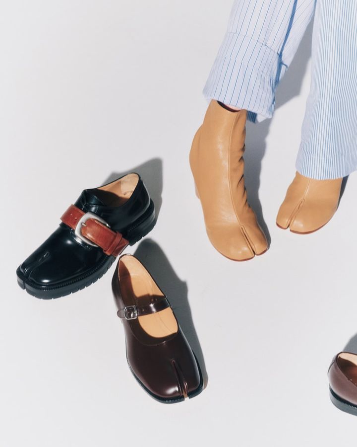 シューズ左から〈「タビ」カウンティー コンバット シューズ〉[ヒール3㎝]¥250,800、〈「タビ」メリージェーン〉[ヒール2.5㎝]¥173,800(全てメゾン マルジェラ/マルジェラ ジャパン クライアントサービス)