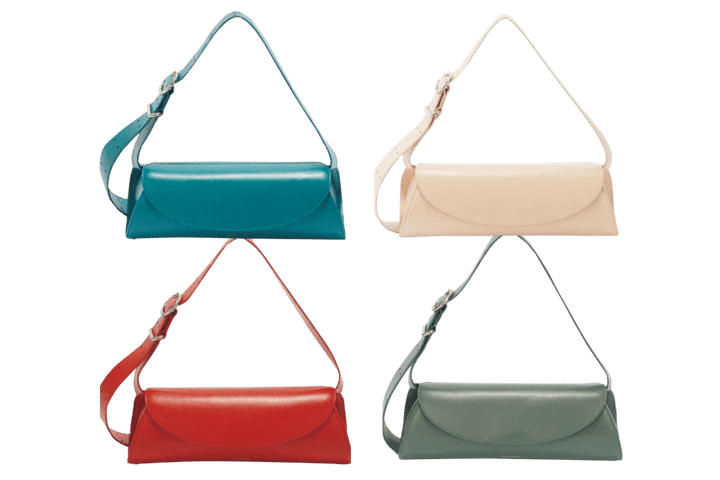 カラーバリエーションが豊富なのも嬉しいポイント。ベルトの長さを調節してショルダーやクロスボディ、ワンハンドルにも。バッグ〈カンノーロ スモール〉[H11×W29×D10㎝]各¥217,800(全てジル サンダー バイ ルーシー アンド ルーク・メイヤー/ジルサンダージャパン)