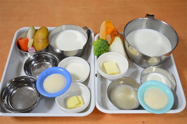 みなさん、この黄色と白色のスイーツみたいな一品、何だと思いますか?これプリンじゃなくて、実は「スープ」なんです!今回、静岡県の農家に教わった「スープのゼリー寄せ」は、よくあるコンソメスープを固めて作るものとは違い、野菜をポタージュにしてゼラチンで固めたフレンチ風前菜♪じゃがいもとかぼちゃを使い、二層仕立てで見た目も鮮やかに仕上げます。素材の甘さとなめらかな口当たりが絶品なんですって!さっそく作ってみましょ。