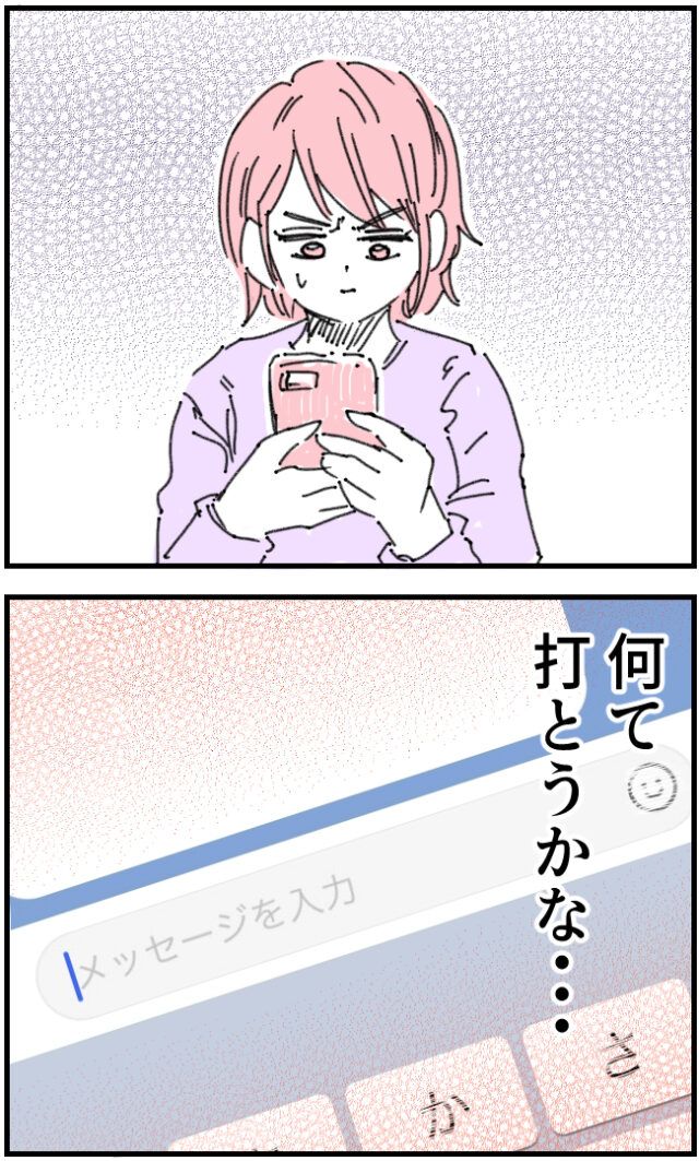 しかし、「変にドキドキする・・・。けど、このままずっと連絡取らないわけにもいかないんだ。前に進まなきゃ!」と気持ちを奮い立たせメッセージを入力。