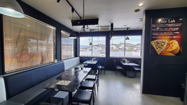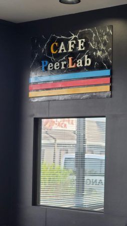 「Cafe Peer Lab」は、JR日豊本線朽網(くさみ)駅西出口から徒歩約10分。国道10号線バイパス沿い、ゆめマート隣、うまいもの市場敷地内にあります。広々とした駐車場も完備。