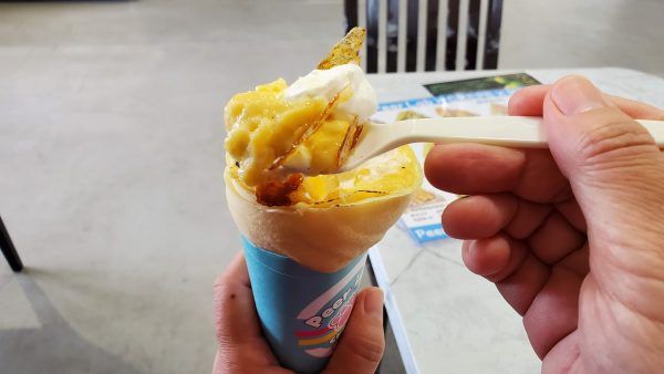 ランチにピッタリのリーズナブルなパスタ、ドリンク、コールドスイーツも気になるところですが、今回は昼下がりのおやつタイムにピッタリのクレープをいただきます。今、話題の進化系スイーツ「ブリュレクレープ(550円)」を注文します。
