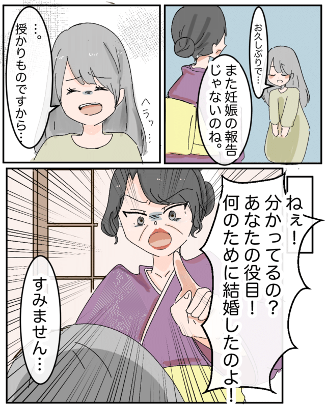 「ねえ、分かってるの?あなたの役目!?何のために結婚したのよ!」なかなか子どもが授からない私に義母はどんどん強く当たるようになっていった。私だって子どもが欲しい。ただただ義母に謝ることしかできなかった・・。