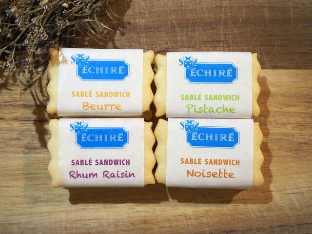 サブレサンドとは、エシレ バターをふんだんに使用したお菓子です。しっとりしたビスケット生地と、ひんやりとしたバタークリームを楽しめるのは店頭に並ぶ商品の中でもサブレサンドだけ。なめらかな口溶けとエシレの芳醇な香りを楽しめます。基本的なお味は「サブレサンド ブール」「サブレサンド ラムレザン」「サブレサンド ピスターシュ」の3種類。