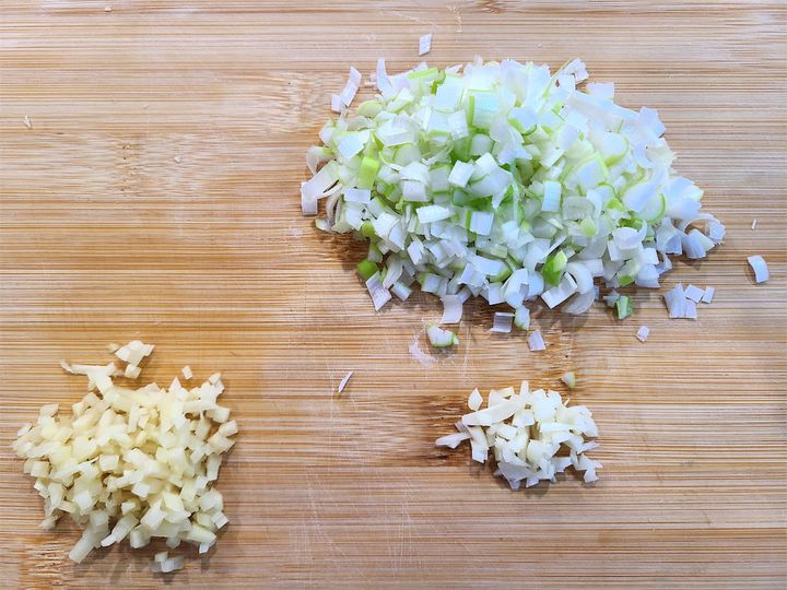 1. にんにく、しょうが、長ねぎを粗みじん切りにします。