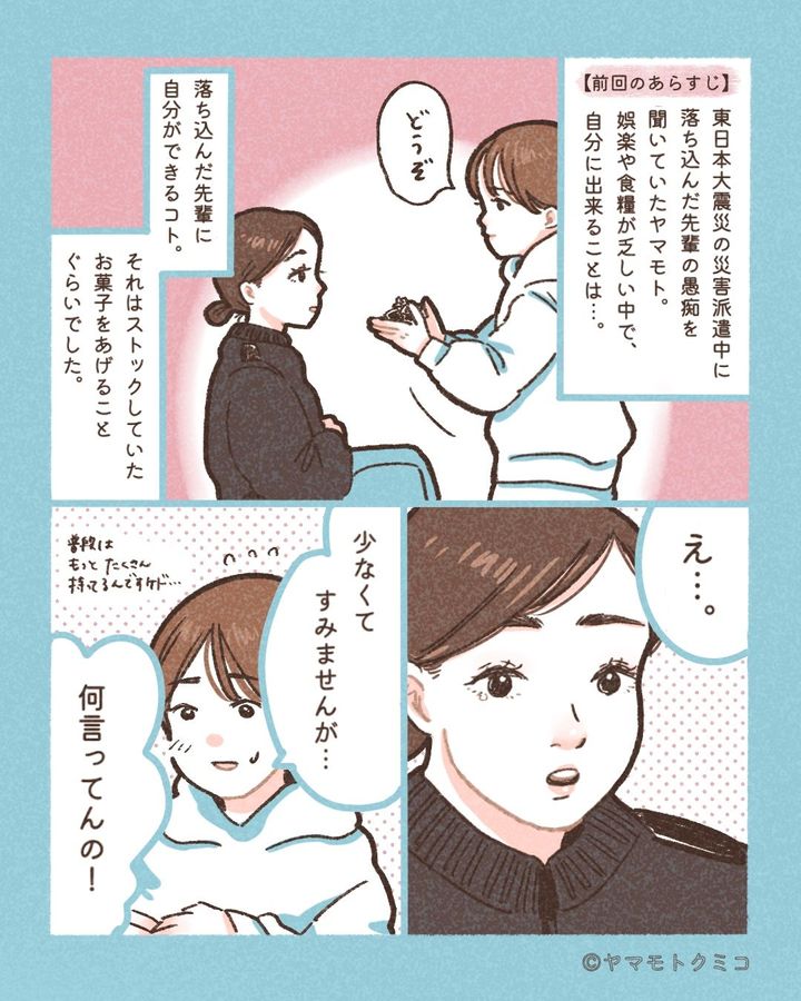 元海上自衛隊のイラストレーター・ヤマモトクミコさんが、東日本大震災の支援を通じて学んだことをマンガでお伝えする連載「元自衛隊員が描く“こころの防災”」。