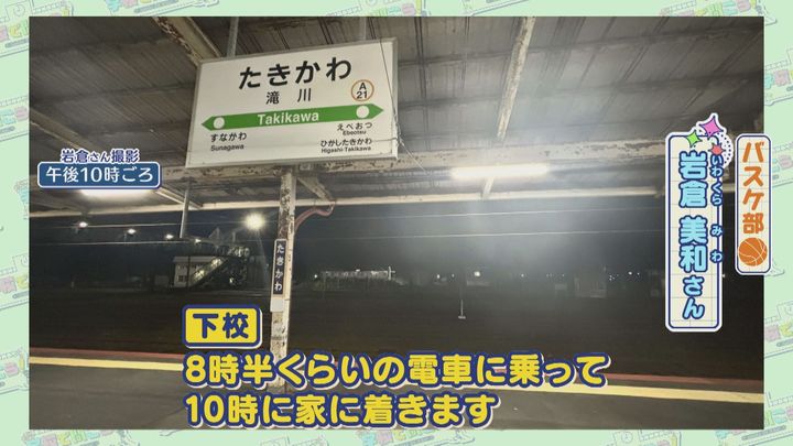 岩倉さん:「(下校は)8時半くらいの電車に乗って、10時に家に着きます」
