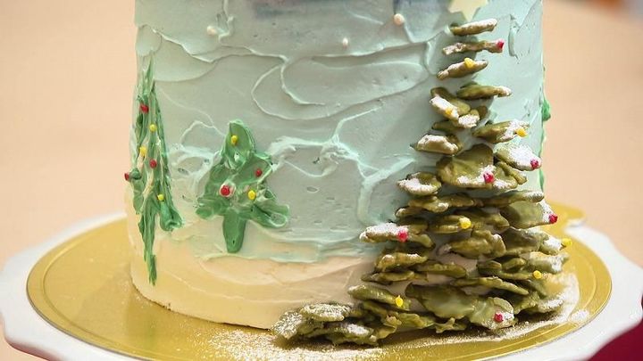 クリスマスツリーが描かれ、まるで絵画のようなものも。