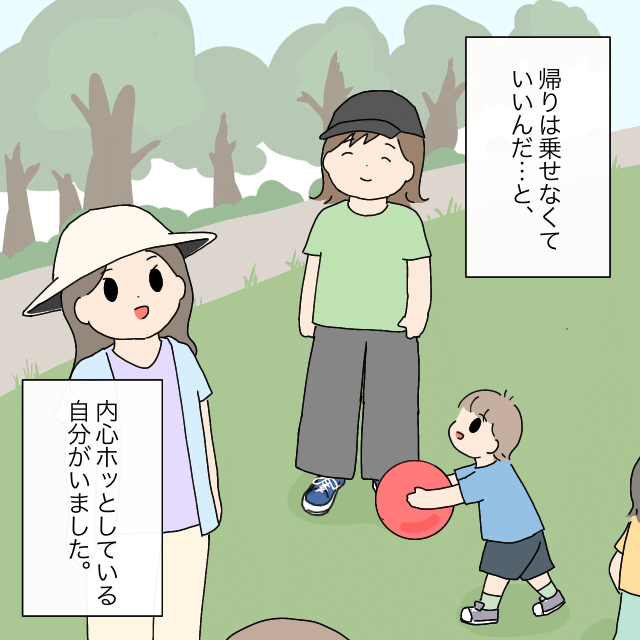 そして「帰りは乗せなくていいんだ・・」いくこさんは、ユウタくんママの言葉を聞いて、内心ホッとしていました。